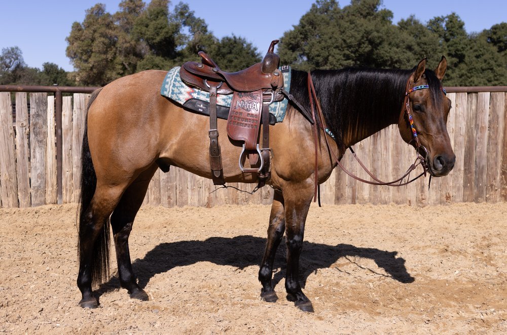 Blossom is an absolutely gorgeous Red Dun mare who is super easy going and about as safe as they come. She greets you in pasture and will stand quietly to be haltered.